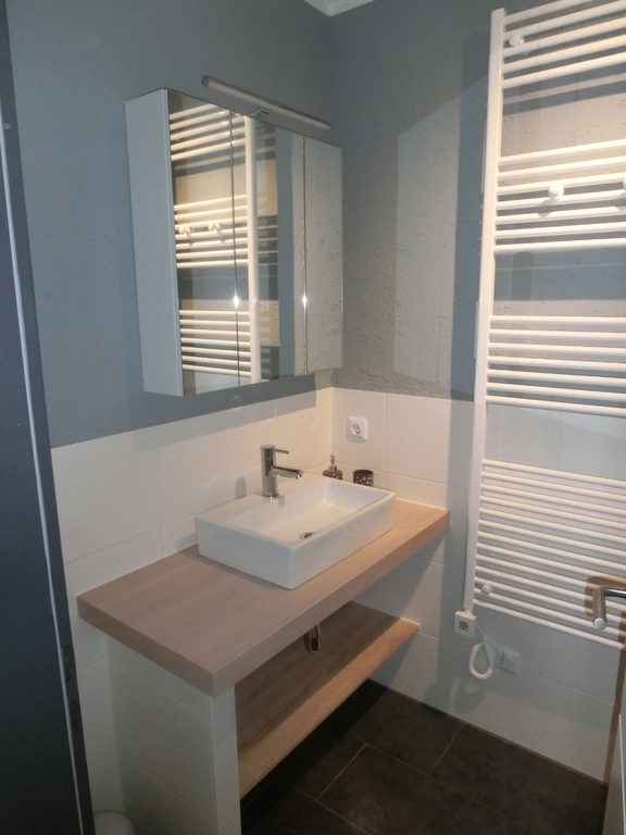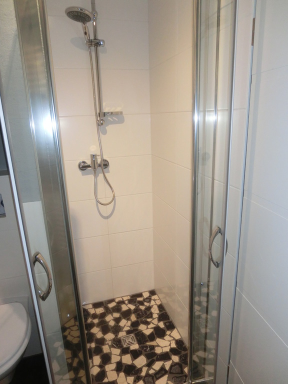 Das Bad ist mit begehbarer Dusche, WC und Föhn ausgestattet.